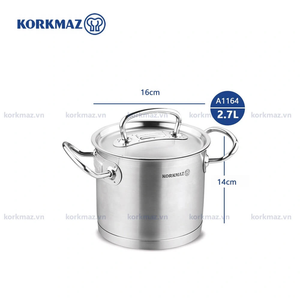 - Dung Tích 2.7 Lít: Với dung tích vừa phải, nồi Korkmaz rất phù hợp cho các món ăn gia đình nhỏ hoặc những bữa tiệc nhẹ, dễ dàng nấu súp, hầm hay lẩu.